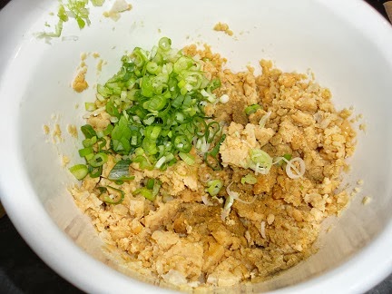 Finely chop the spring onions and add them to the mashed chickpeas along with the other ingredients.